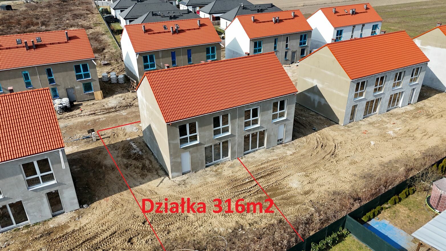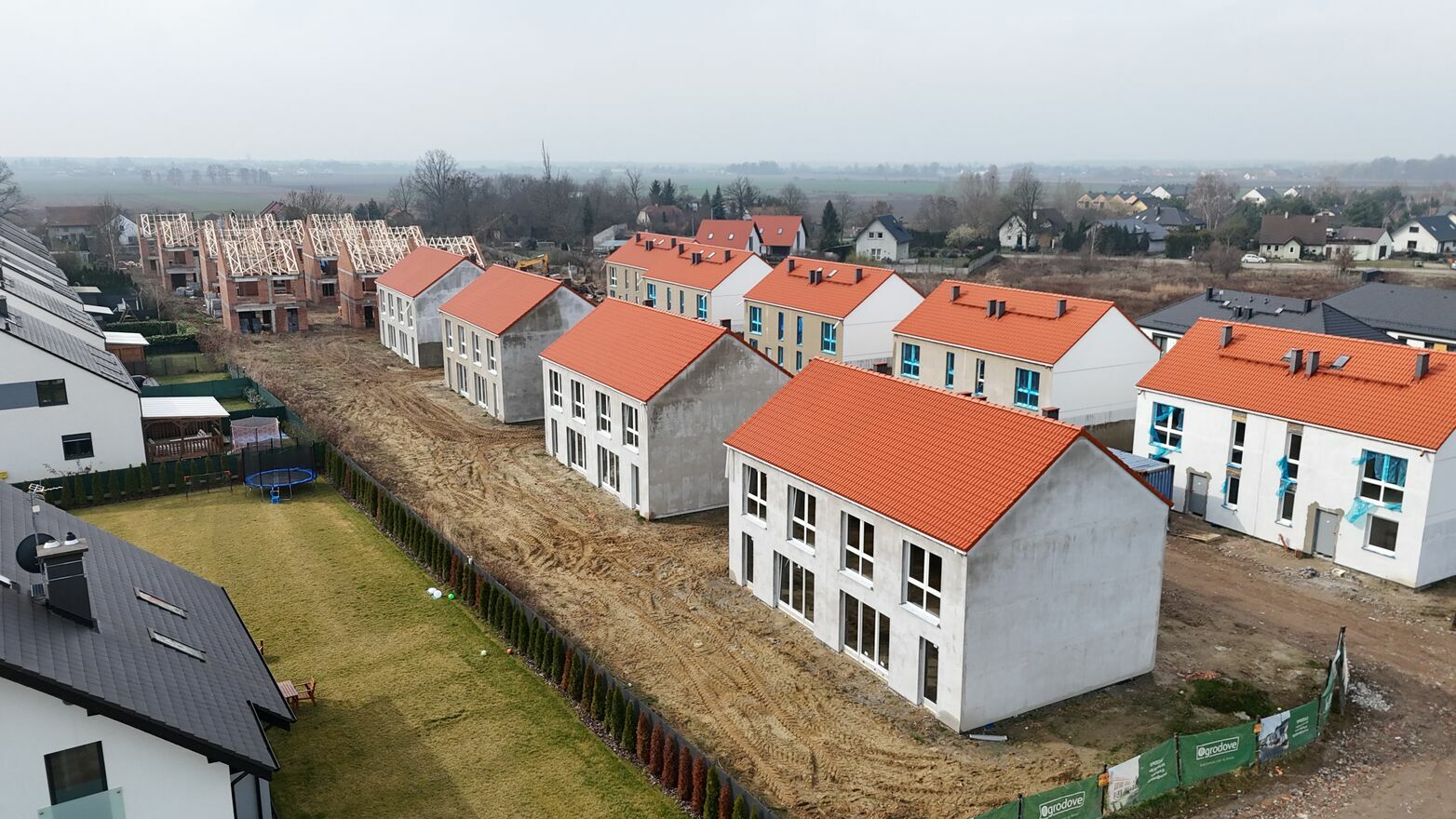 Stan deweloperski : budynki ocieplone ( grafit 18cm) z dwoma miejscami parkingowymi, elewacją zewnętrzną, stolarką ( okna trzy szybowe profil - salamander, drzwi wejściowe) tył i boki ogrodzenie, wew. tynki maszynowe gipsowe, wszystkie instalacje, posadzki całość do indywidualnego wykończenia.